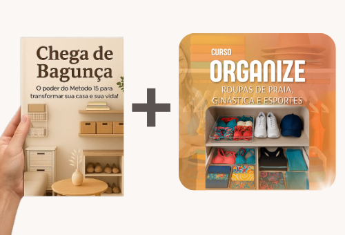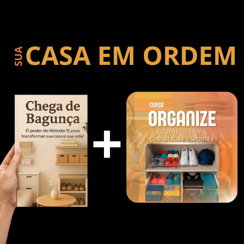 Você já percebeu como a desorganização começa na mente e acaba se espalhando pela casa? O Combo Sua Casa em Ordem foi criado para transformar essa realidade — começando dentro de você e refletindo em cada canto do seu lar. Nesta oferta exclusiva, você recebe dois produtos complementares que unem mudança interna e ação prática: o eBook “Chega de Bagunça” e o curso “Organização de Roupas de Praia, Ginástica e Esporte”.