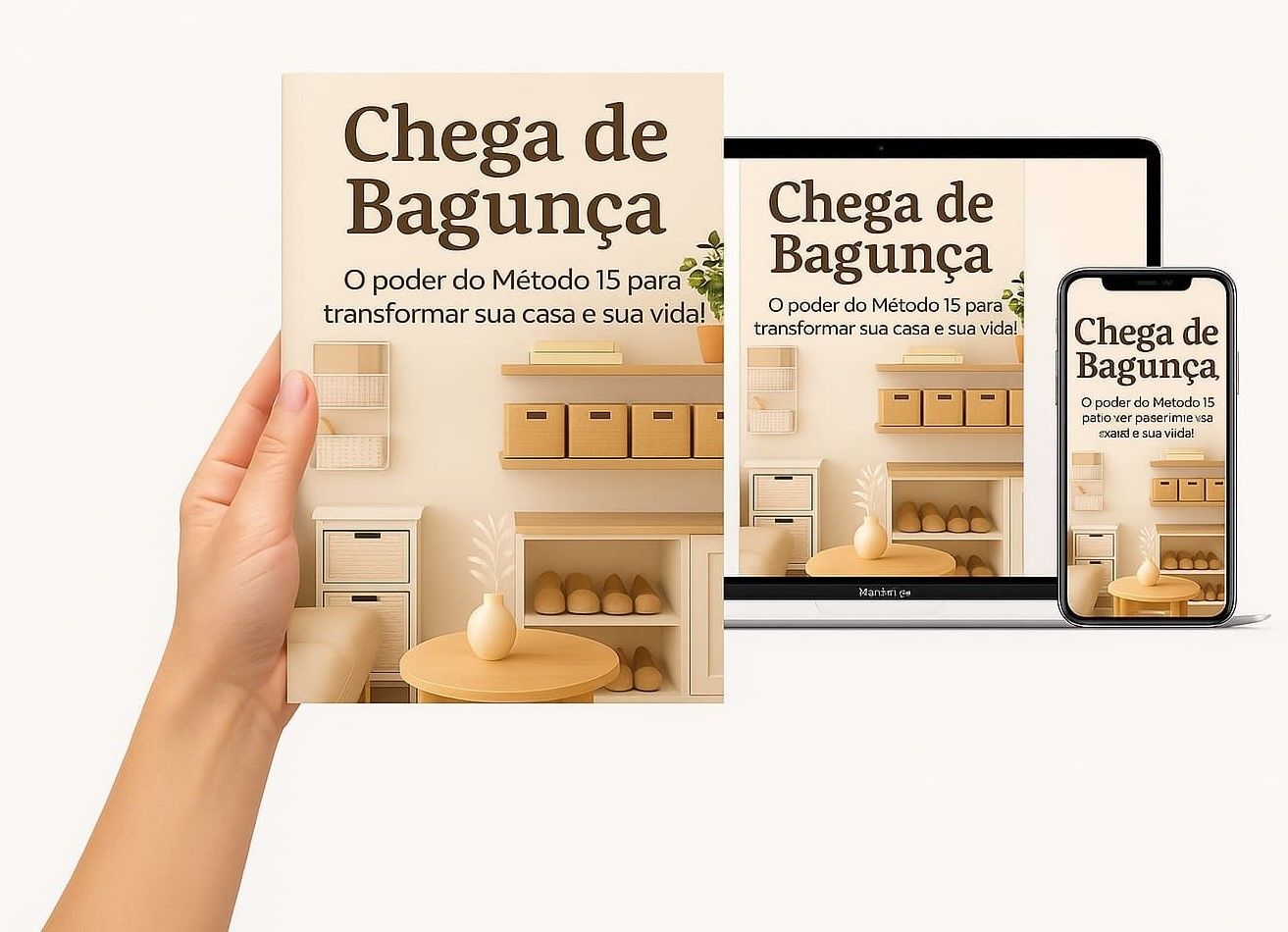 Garanta já o seu ebook Chega de Bagunça e dê o primeiro passo para uma vida mais leve, organizada e feliz.