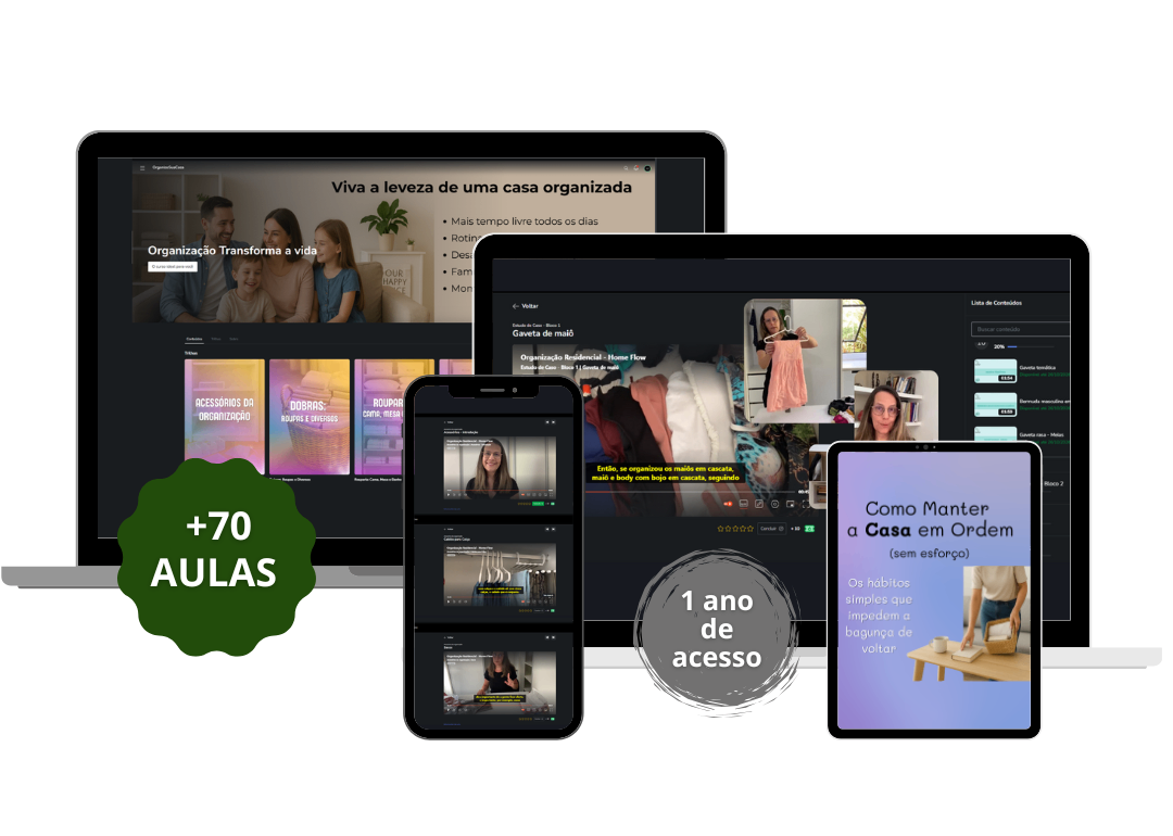 São mais de 70 aulas práticas e diretas ao ponto, pra você aprender de forma leve e aplicar tudo junto comigo, passo a passo, na sua própria casa.