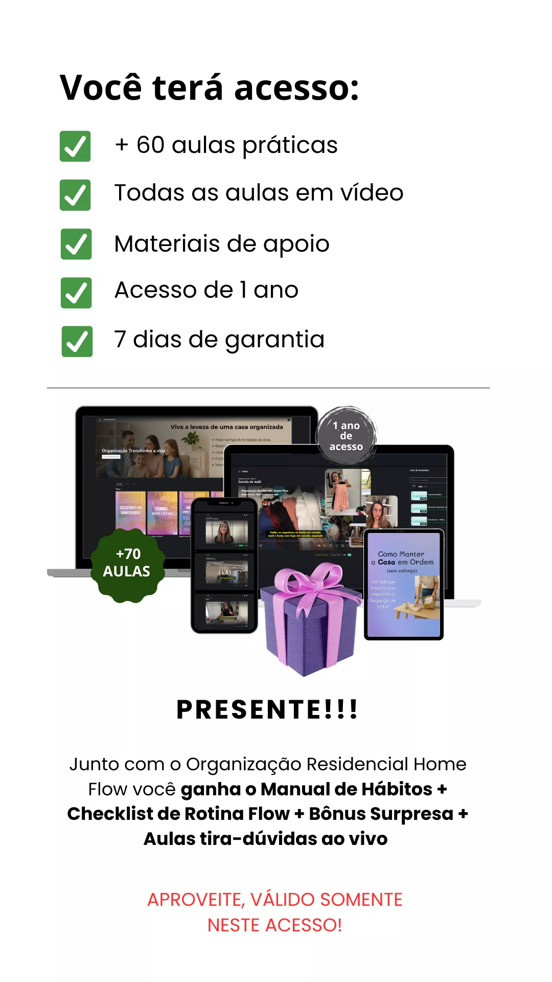 Não! O Home Flow é feito pra todos — desde quem está começando do zero até quem já tentou se organizar antes, mas ainda sente que a bagunça sempre volta. As aulas são práticas e fáceis de aplicar no dia a dia.